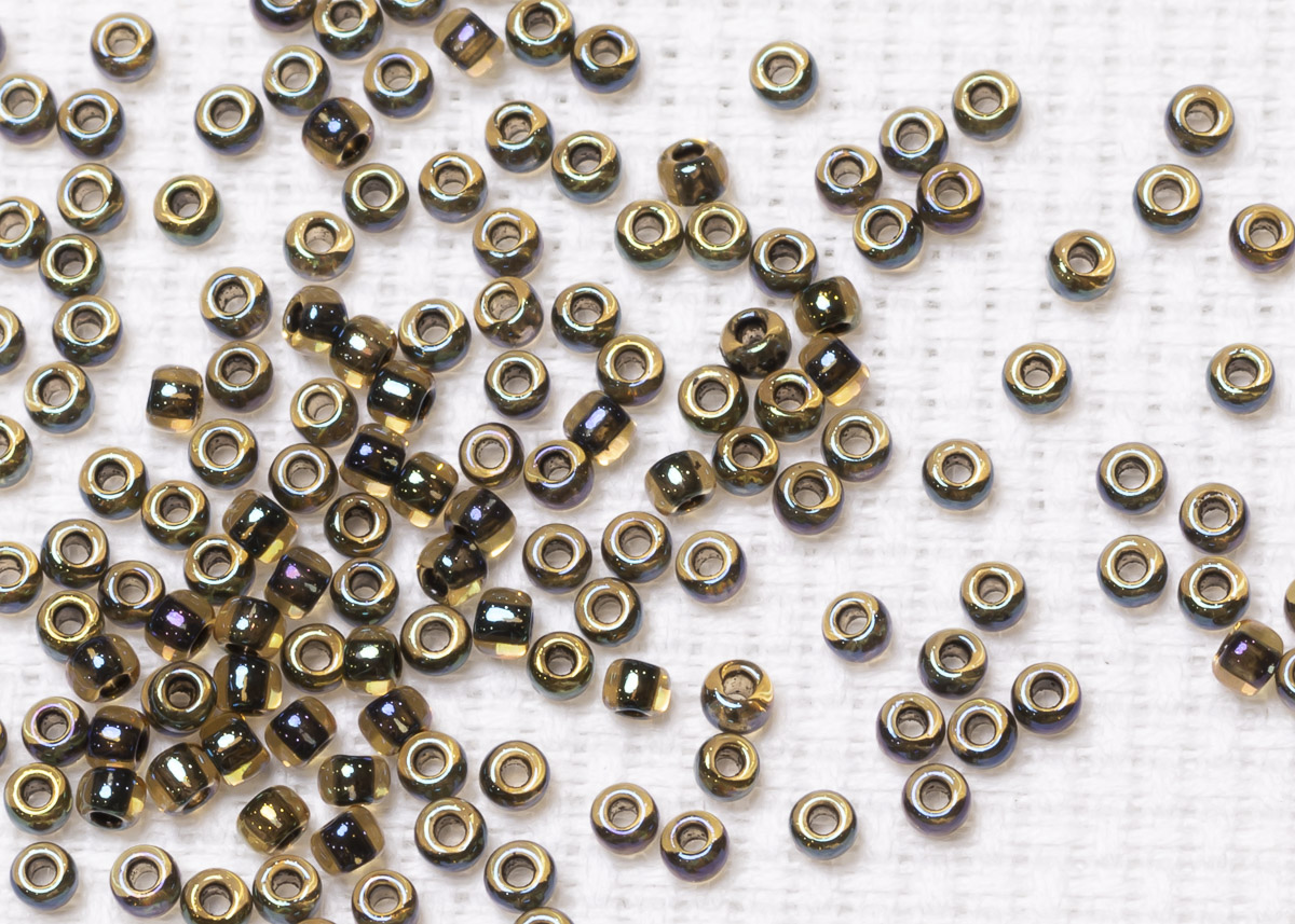 Бисер Япония круглый 11/0 10г 0244 светлый топаз/чёрный радужный, окрашенный изнутри